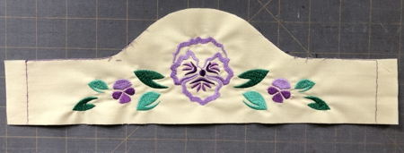 If you have a 12" long hoop, upload the "Bodice" file into the machine. Stabilize the solid-colored fabric with light-weight iron-on stabilizer. Select threads. Embroider the file.
