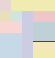 We used scraps of 11 different hues. Note that each piece should be a different color. Cut: