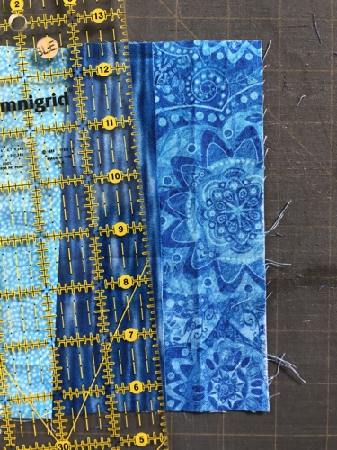 Go on until your strip measures 7" x 25". Press the strip and trim it to 6" x 24 1/2".