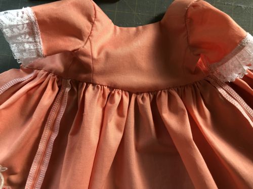 | Attach the back part of the skirt to the bodice in the same way as described above. |