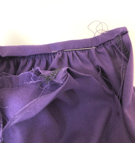 Sew 2 rows of gathering stitches along the waist edge starting and finishing 1/2" from the short sides.