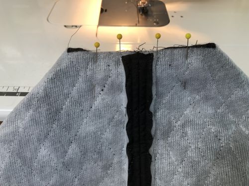 | On the right side, topstitch along the short ends of the welt. |