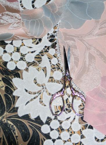 Step Three: With a straight stitch along the inner outline of the lace attach the lace to the fabric.