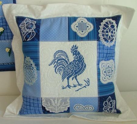 Spread the pillow's front panel over the polyester felt. Hoop the central white square and felt and embroider a rooster or hen from .... The felt will serve as a stabilizer.
