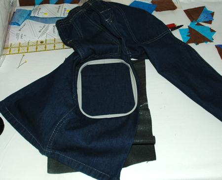 It's little more tricky to embroider the jeans. First, you will have to rip the inseams open. For stabilizer, we used light-weight tear-away fusible (iron-on) stabilizer.